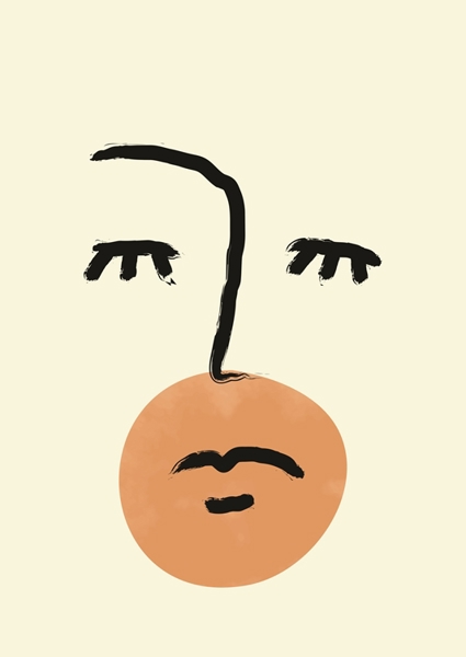 "Minimální kresba obličeje" poster od Jay Stanley. Tahle minimalistická kresba tváře pracuje s pár tahy, které hrají na jednoduchost a přitom toho řeknou hodně. Černé linky, co skoro tančí, definují oči, nos a ústa, zatímco oranžový kruh v dolní části přidává teplý, skoro sluneční nádech. Je to jako když si moderní umění dá pauzu a řekne „hele, tohle je základ, ale pořád to žije“. Skvěle zapadne do prostoru, kde se cení čistota a styl bez zbytečných okázalostí. Prostě cool doplněk do každého bytu.