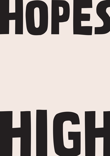 "Naděje k nebi" poster od Frankie Kerr-Dineen. Černá typografie na jemně světlém pozadí vytváří silný kontrast, který okamžitě upoutá pozornost. Slova „HOPES HIGH“ nejsou jen motivací, ale také vizuálním prohlášením – odvážná, přímočará a bez omluv. Minimalistický design bez zbytečných detailů perfektně zapadne do moderních interiérů, ať už doma nebo v kanceláři. Tenhle kousek je jako denní dávka optimismu, která ti připomene, že sny mají být vysoko – prostě se neboj mířit vzhůru.