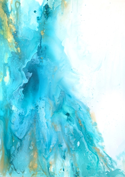 "This artwork embodies the fluidity and tranquility of the ocean, using vibrant blues and hints of gold to evoke serene movement. Ideal for modern coastal interiors, it enhances spaces with its calming presence and elegant abstraction, perfect for living rooms or beach retreats."