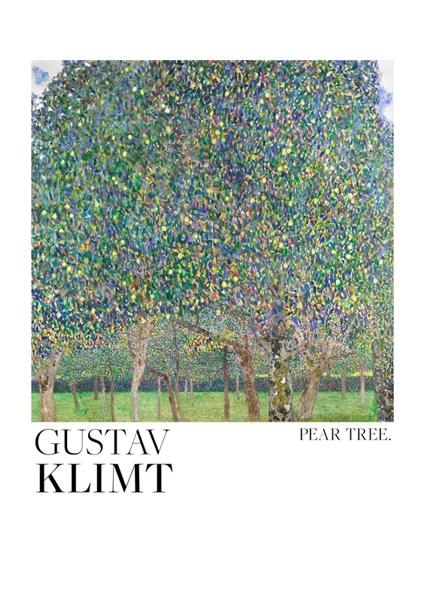 "Hrušeň (1903) Plakát " poster od Gustav Klimt. Obraz plný života a barev, který zachycuje hru světla a stínu mezi listy hrušně. Gustav Klimt tady nepředvádí jen strom, ale explozivní mozaiku přírody v pohybu – listy se třpytí jako pixelová symfonie, která vás vtáhne do hlubin zahrady. Tenhle poster není jen dekorace, je to malý festival života, připomínka, že i obyčejný strom dokáže být uměleckým manifestem plným vitality a přírodních rytmů. Žádný nudný print – tady to žije.