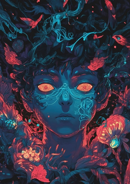 "My art dives into surreal anime realms, merging luminous color and symbolism. This vivid style invites viewers to explore hidden depths, forging a bridge between dream and reality."