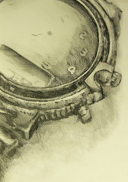 "A detailed pencil sketch of a watch showcasing intricate craftsmanship. The monochrome illustration highlights the watch face, emphasizing mechanical precision and timeless design, perfect for horology and art enthusiasts. Ideal for decor and collectors."