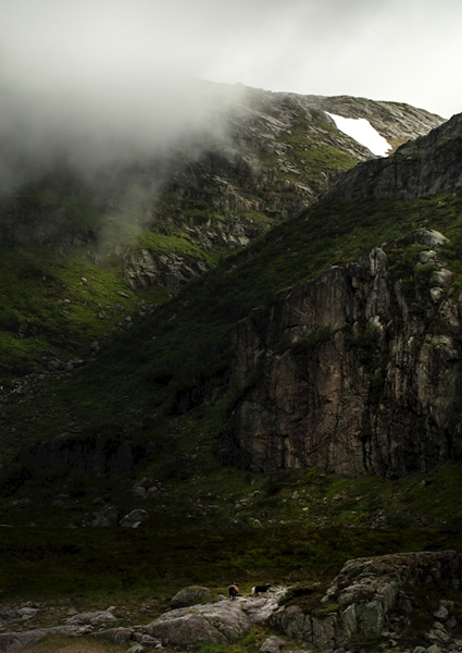 "Směrem na Bergen jedeme" poster od Martin Thun. Divoká krása hor vystupuje z mlžného objetí, kde se skály zvedají jako starodávní strážci. Zelené svahy, pokryté mechem a trávou, kontrastují s drsnými skalními stěnami, zatímco poslední zbytky sněhu připomínají, že příroda je neúprosná. V dálce se pasou ovce, neviditelné hrdinky této tiché krajiny. „Mountains are calling“ není jen obraz – je to volání divočiny a klidu v jednom.