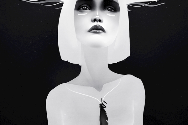 "ruins, 2am" poster od Ruben Ireland. Postava s bílými rohy jako z jiného světa vystupuje z temnoty – minimalistická, ale výrazná. Její androgynní rysy a jemné peříčko na krku evokují něco mezi rituálem a tajemnem, jako kdyby právě probíhala noční mystika kdesi v zapomenutých ruinách Londýna. Kontrast světla a stínu tady není náhoda, ale výzva k podívané, která se nehodlá vzdát tajemství. Tak trochu duch, tak trochu rebel – přesně jako tohle dílo.