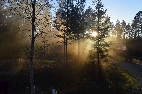 "Soumrak u pece na dřevěné uhlí" poster od Helene Olofsson. Krásný večer v peci na dřevěné uhlí v Älmhultu v Mönsterås