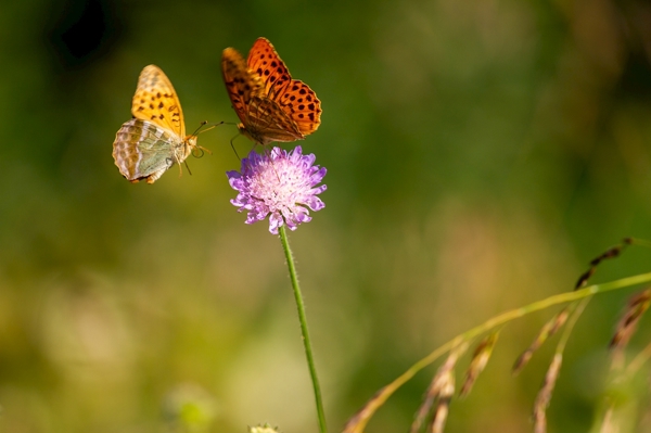 "pearl butterfly's in kontakt with each others on summer meadow"
