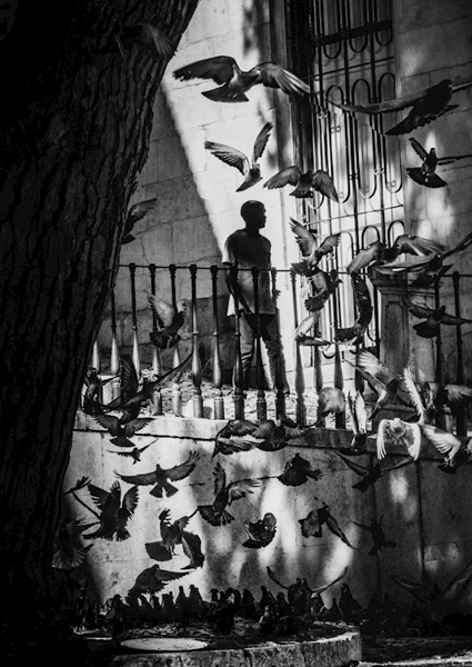 "Praça da Figueira, Lisabon " poster od João Cabral. Černobílá scéna z lisabonského náměstí Praça da Figueira vystihuje ten moment, kdy se čas zastaví – a přitom všechno žije. Silueta člověka stojí klidně, jako by zrovna přemýšlel o všem i o ničem, zatímco kolem něj krouží hejna holubů. Ostré světlo jihu Portugalska vykresluje stíny, které tančí po zdech a vytvářejí kontrast mezi klidem a pohybem. Taková ulice, co má svůj příběh, a vy ho můžete mít doma na zdi.