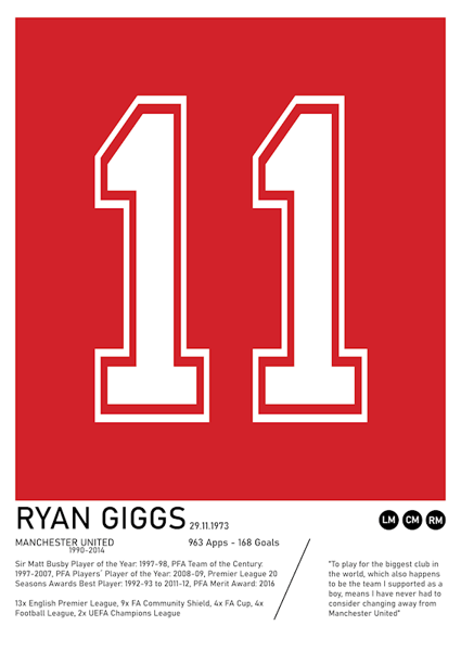 "Ryan Giggs Poster in Manchester United. Ryan Giggs was one of the greatest players ever in the Premier League and in Manchester. Giggs played for many successful seasons in Manchester."