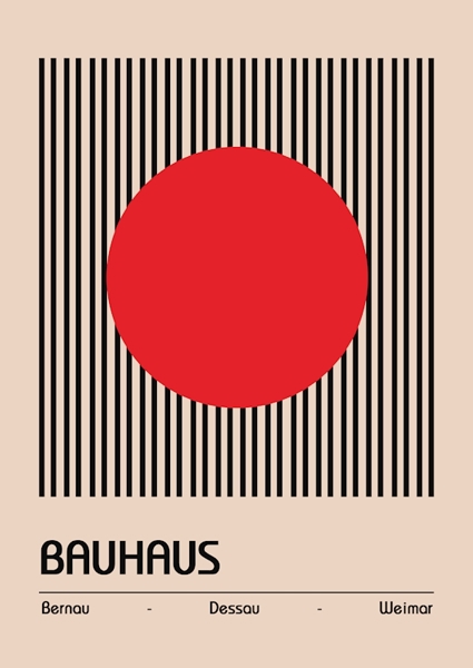"Originální plakát Bauhausu" poster od William Gustafsson. Čistá geometrie, která neklame – rudý kruh uprostřed černobílých pruhů vás vtáhne do světa Bauhausu, kde design není jen dekor, ale životní filozofie. Minimalistický, přesto výrazný obraz, který odkazuje na slavné německé školy v Bernau, Dessau a Weimaru. Skvělý kousek pro všechny, kdo chtějí mít modernu na zdi a zároveň si připomenout ikonickou éru architektury a umění. Tohle není jen plakát – je to malý manifest designu.