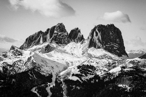 "Motive from a sunny January day in the Dolomites. Black and white for the timeless perspective. "