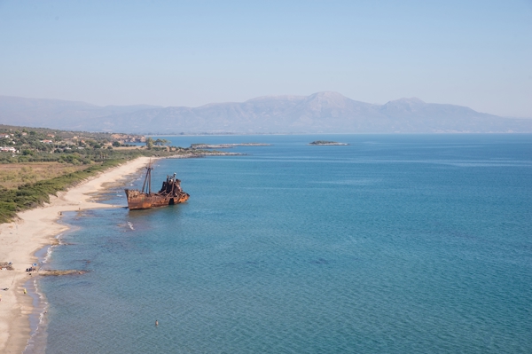 "In the very remote area of Mani in the southern peloponnes you can find beautiful landscape but also this old shipwreck which is rusting on one of the most beautiful beaches of the area."