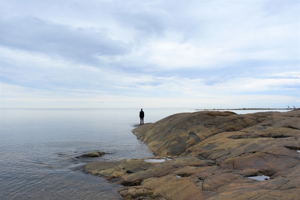 "Směrem k obzoru" poster od Lena Andersson. Osamělá postava stojí na drsných skalách a hledí do nekonečna klidného moře. Šedivé nebe se zrcadlí v hladině, vytváří atmosféru, která je zároveň snová i téměř nadpřirozená. Tento pohled z pobřeží Bjuröklubbu ve Švédsku zachycuje moment ticha a zamyšlení, kdy příroda a lidská přítomnost splývají v jednu scénu. Blues a zemité tóny vás vtáhnou do klidného letního okamžiku, který si žádá pauzu a prostor pro myšlenky.