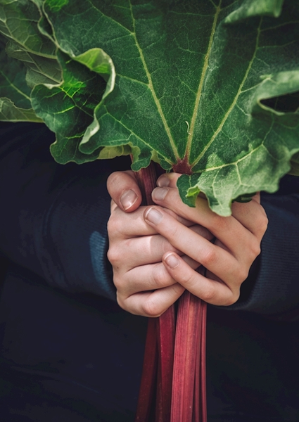 "Rebarbora a dětské ruce" poster od Kristina S. Ruční svazek rebarbory přináší syrovou krásu přírody v její nejpřímější podobě. Sytě zelené listy kontrastují s výraznými červenými stonky, které drží pevné ruce – skoro jako by zachycovaly moment, kdy příroda a člověk spolu mluví beze slov. Tenhle snímek není jen o jídle, je to o vztahu, o doteku země, který cítíte až v prstech. Ideální pro milovníky autentických příběhů a čerstvých chutí.