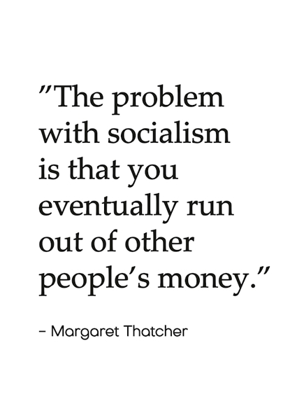 "Margaret Thatcher quote on a poster. Margaret Thatcher was Prime Minister of Great Britain from 1979 to 1990 and is known as the Iron Lady. Margaret Thatcher was a great opponent of socialism and was a conservative leader in the United Kingdom. Perfect quote poster to hang up on the road if you might vote conservative and don't like socialism. "