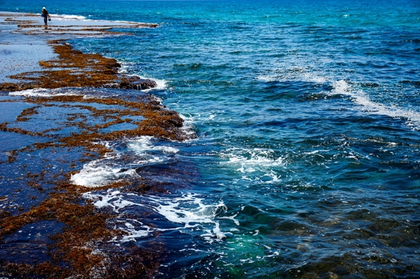 "Sdot Yam Strand #5" Poster von Tal Paz-Fridman. Das Meer zieht sich raus, die Algen tanzen auf dem nassen Stein – und da steht er, der einsame Fischer, als wäre er der letzte Boss am Mittelmeer-Level. Sdot Yam Beach in Israel zeigt sich hier von seiner ganz entspannten Seite, mit Farben, die fast schon hypnotisch sind. Das Wasser flüstert Geschichten, die nur der Wind versteht. Perfekt, wenn du dir ein Stück Ruhe und diesen salzigen Vibe nach Hause holen willst.