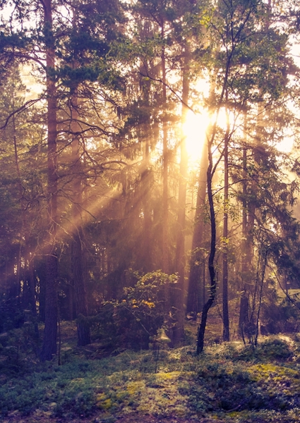 "Gold schimmert" Poster von Victoria Rennerståhl. Das ist dieser Moment, wenn die Sonne einfach mal so richtig die Kontrolle übernimmt und die Schatten aus dem Wald verjagt – als hätte die Natur ihren eigenen Spot an. Goldenes Licht, das sich durch die Bäume kämpft und alles in ein leicht magisches Erwachen taucht. Du spürst fast, wie die Luft frischer wird, während die ersten Strahlen Täby und Hägernäs in Stockholm wachküssen. Ein Bild, das dich daran erinnert: Jeder Tag startet mit einem kleinen Wunder.