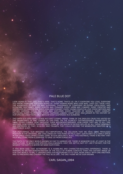 "Carl Sagan's "Pale Blue Dot" speech highlights Earth's fragility and humanity's unity, urging us to cherish our planet and rise above our differences in the vast cosmos."