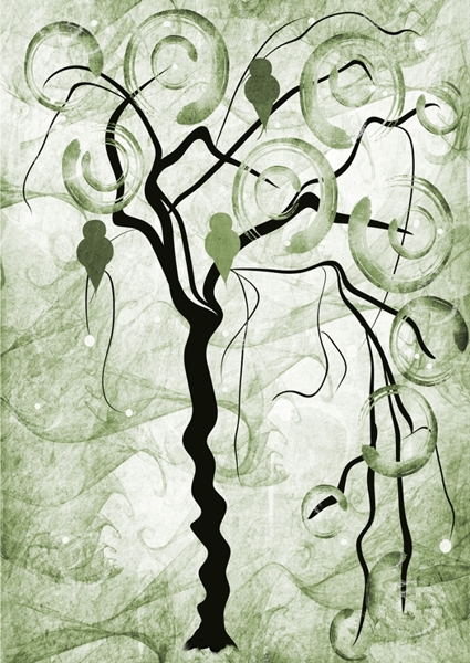 "It is a quirky tree with swirls and birds in black, white, and green. Som konstnär hämtar jag mycket av min inspiration från mitt eget liv och de idéer som den framkallar Färgerna, formerna och mönstren reflekterar ofta mitt eget humör och den sinnesro jag känner just då i min kreativa process."