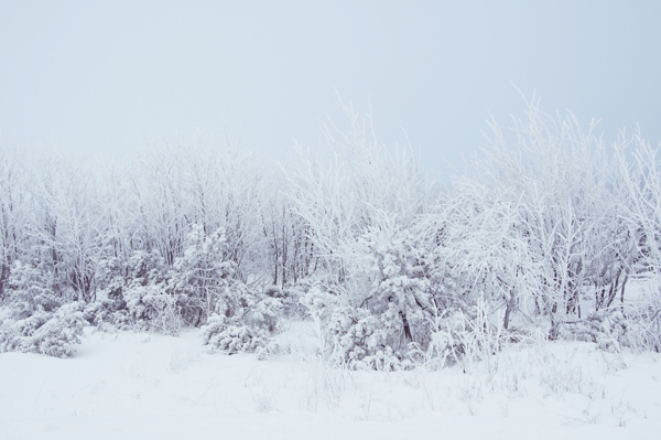"Snow-covered and rime-covered trees and bushes"