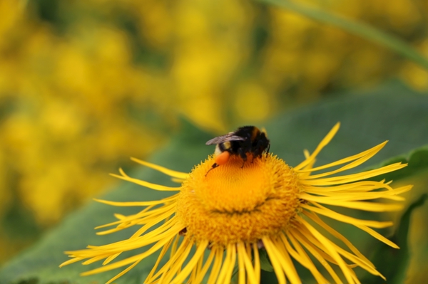 "Hummel in gelber Blüte" Poster von Erika Norell. Diese Hummel chillt mitten im Sonnenschein auf einer strahlend gelben Blüte – Sommer pur in einem Bild. Die wilden, fast wie explodierende Blütenblätter wirken wie eine kleine Bühne für den flauschigen Gast, der hier ganz entspannt seine Arbeit macht. Ein Moment, der das Summen des Lebens einfängt, als hätte die Natur gerade ein spontanes Dancefloor-Set gestartet. Für alle, die sich ein Stück lebendige Leichtigkeit ins Zuhause holen wollen.