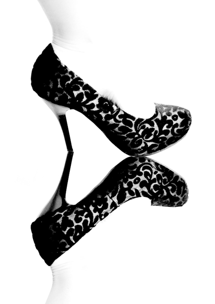 "Déjà-vu" Poster von Matilda Gustavsson. Ein High Heel, der nicht nur Schuhe zeigt, sondern auch Schatten und Spiegelung spielerisch inszeniert. Das filigrane, fast animalisch anmutende Muster kontrastiert mit der klaren Schwarz-Weiß-Ästhetik – ein visueller Tanz zwischen Realität und Reflexion. Hier trifft Eleganz auf eine Prise Geheimnis, fast so, als würdest du beim Anblick kurz innehalten und denken: „Hab ich das nicht schon mal gesehen?“ Ein Statement, das gleichzeitig vertraut und überraschend wirkt.