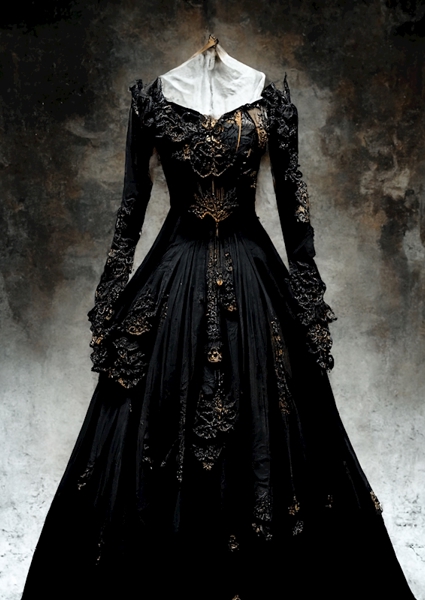 "Gothic Kleid" Poster von Winnie Møller. Schwarze Eleganz trifft auf düstere Fantasie – dieses Gothic-Kleid spielt mit barocken Details und einem dramatisch fließenden Schnitt, der sofort Geschichten von alten Legenden flüstert. Die goldenen Verzierungen wirken fast wie geheime Symbole, die du nur entwirren kannst, wenn du dich traust. Ein Kleid, das nicht einfach nur anzieht, sondern Atmosphäre schafft – perfekt für alle, die im Alltag gern mal in eine andere Welt abtauchen. Ein bisschen Drama, ein Hauch Skandinavien-Vibe und ganz viel Stil.