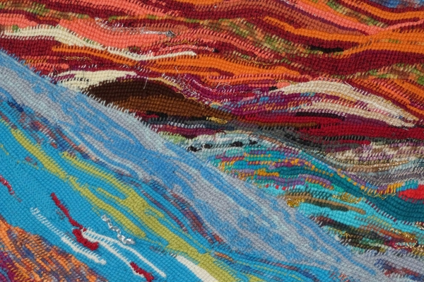 "Avalon " Poster von Natascha Sabo. Farben toben wild durcheinander – Blau trifft auf Orange, Rot mischt sich mit Grün. Dieses Kunstwerk fühlt sich an wie ein lebendiger Traum, in dem jede Masche eine Geschichte erzählt. Die goldenen Akzente blitzen wie versteckte Geheimnisse auf, die an das mystische Avalon in Glastonbury erinnern. Perfekt für dich, wenn du Lust auf ein bisschen Chaos mit Charme hast. Ein echtes Statement für dein Zuhause, das sofort ins Auge fällt.