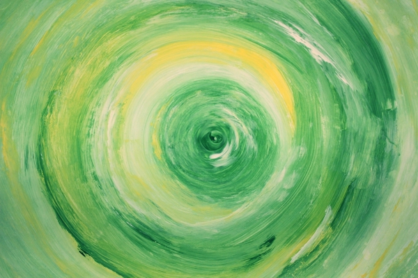 " Ein Wirbel aus Grün und Gelb, sanft und doch kraftvoll. Die Farben tanzen, schichten sich, kreisen ins Zentrum. Es ist wie ein Atem, der die Leinwand belebt. Jeder Strich erzählt von Bewegung, von Wachstum, von Leben. Das Auge wird hineingezogen, verliert sich und findet Ruhe zugleich."