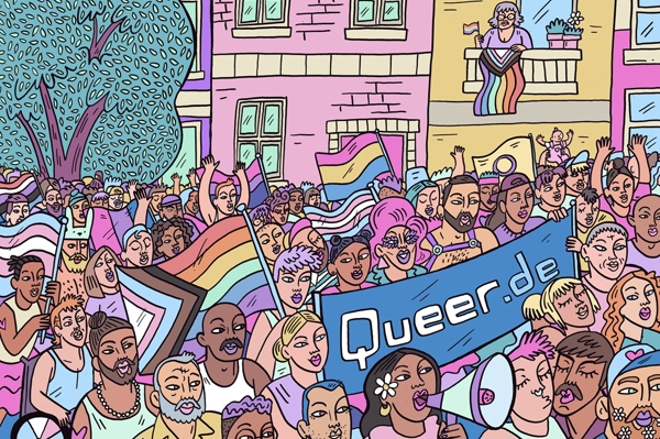 "Zum 20. Geburtstag von queer.de im Jahr 2023 haben wir den Berliner Künstler Rory Midhani gebeten, ein offizielles Poster zu entwerfen."
