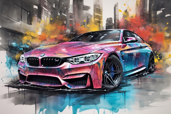 "BMW M4 Coupé Motorsport" Poster von Remigius Wloczkowski. Ein BMW M4 Coupé, das hier nicht einfach nur ein Auto ist – es explodiert förmlich in knalligen Farben und urbanem Flair. Die Kombination aus dynamischen Linien und spritziger Farbpalette fühlt sich an wie Speed, der in Zeitlupe durch die Stadt rast. Dieses Kunstwerk fängt das Motorsport-Feeling ein, ohne dabei langweilig zu werden. Perfekt, wenn du deinem Raum einen Hauch von Adrenalin und Stil verpassen willst.