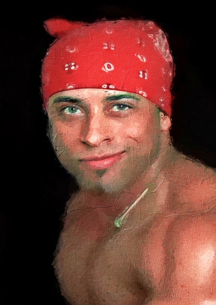 "Ricardo Milos Meme" Poster von Tur Wan. Rot leuchtet die Bandana, während der Blick sitzt – dieser Typ hat Meme-Status deluxe. Das Bild fängt genau diesen unverwechselbaren Charme ein, der Ricardo Milos zum Internet-Phänomen gemacht hat. Die Farben knallen vor dem schwarzen Hintergrund, fast so, als wollte das Kunstwerk sagen: „Hier kommt der König des Memes.“ Ein Must-have für alle, die Humor mit Stil an die Wand bringen wollen. Einfach unübersehbar.