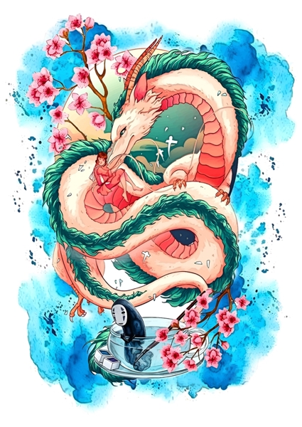 "Spirited Away : Haku" Poster von Dororo Visual. Ein wilder Tanz aus Spirited Away-Mythos und knalligen Farben – hier schlängelt sich Haku als majestätischer Drache durch ein Meer aus zartrosa Kirschblüten und leuchtendem Wasserblau. Die verspielte Balance zwischen mystisch und lebendig bringt das Studio-Ghibli-Feeling direkt an deine Wand. Perfekt, wenn du Lust auf ein Stück japanische Magie hast, das nicht nur Anime-Fans sofort abholt. Ein echter Hingucker, der Geschichten erzählt, ohne ein Wort zu verlieren.