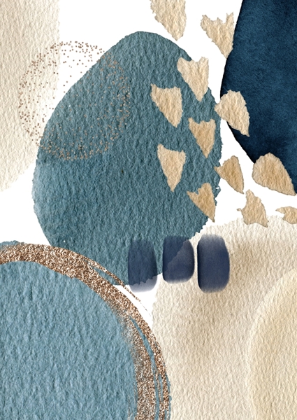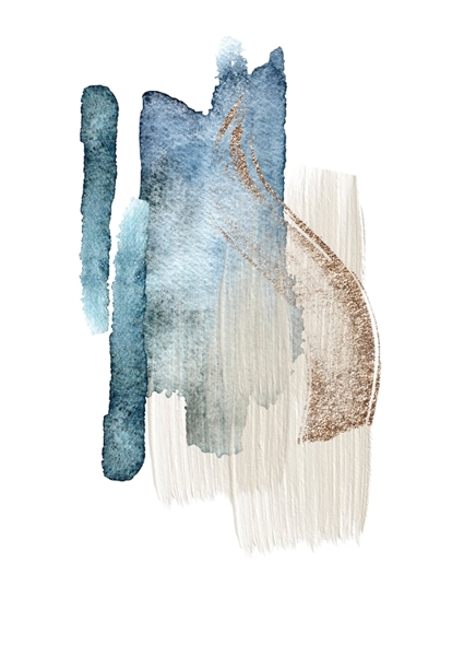 "This abstract watercolor painting blends deep blues and earthy tones to evoke tranquility and elegance. Ideal for contemporary and minimalist interiors, it adds a touch of serenity. Perfect for living rooms or offices, it enhances spaces with its calming presence."