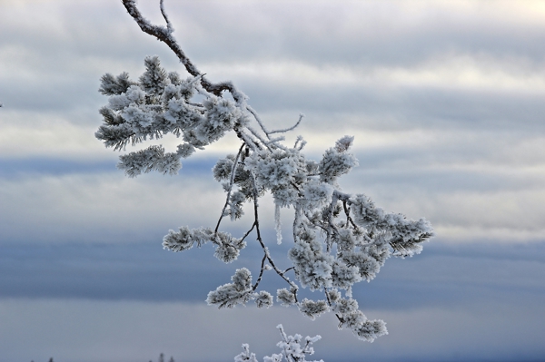 "Twiggy" Poster von Theres Sålder Antonsson. Ein einsamer frostiger Tannenzweig bei -32 Grad Kälte