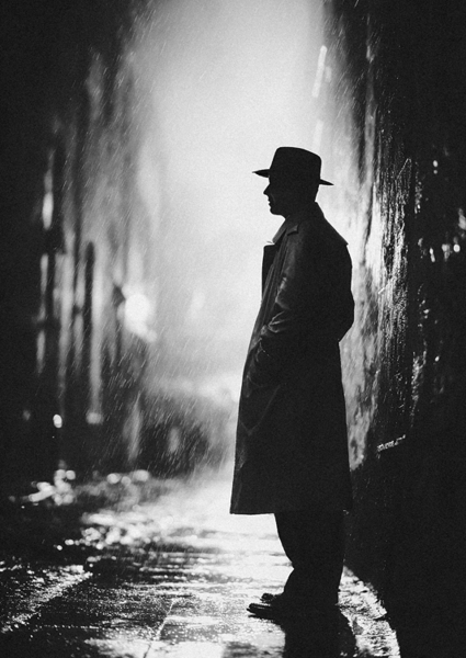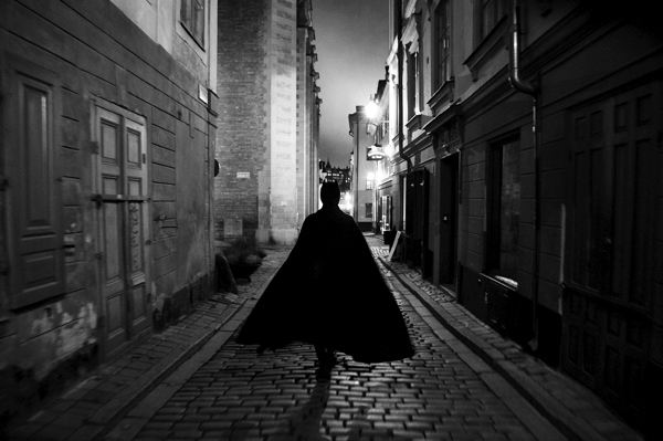 Batman Schatten in Schwarz-Weiß-Fotografie