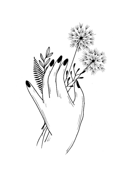 "Hånd Wildflower Plukning" poster af Pia Makk. En hånd med sorte negle griber let om vilde blomster og blade – helt enkelt, men alligevel fuld af liv. Den sorte fineliner understreger hver eneste detalje, som om naturens skrøbelighed er fanget i et øjeblik mellem stregerne. Minimalistisk, men alligevel så udtryksfuldt, at det næsten føles som om, håndens bevægelse kan mærkes. Perfekt til dig, der elsker det rene og rå i design – og som kan lide at lade øjnene vandre i noget, der både er stille og stærkt på én gang.