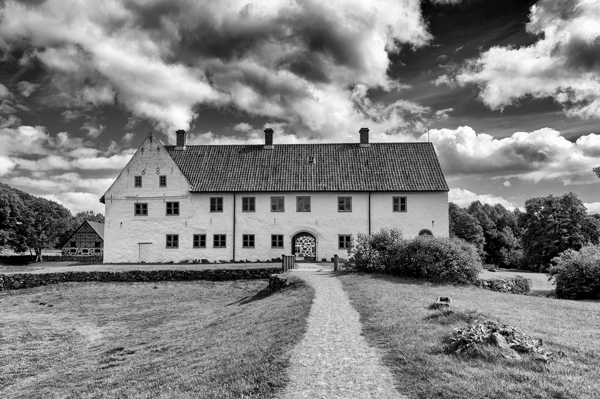 "Hovdala Slot" poster af Jörgen Hagman. Hovdala Slot Skåne Arkitektur Sort og hvid