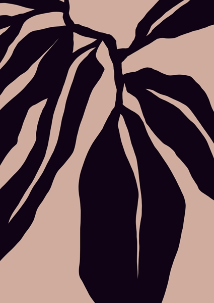 "sorte blade" poster af Veroniek De Leenheer. Svære, sorte silhuetter af blade snor sig mod en afdæmpet, støvet baggrund – enkelt, men alligevel så dragende. Det føles næsten som en stille skov, fanget i en minimalistisk drøm, hvor naturens konturer leger med skygger og rum. Perfekt til den, der vil have lidt ro med kant på væggen. Ikke bare et billede – en stemning, der hænger ved.