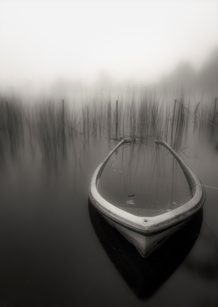 "A foggy morning somewhere in Sweden, a calm lake, a sunken boat in the reeds. An image of the ephemeral, the beautiful, magical that is Sweden. The landscapes, the lakes, the light, the stillness and the ethereal presence of the human sense of the beautiful."