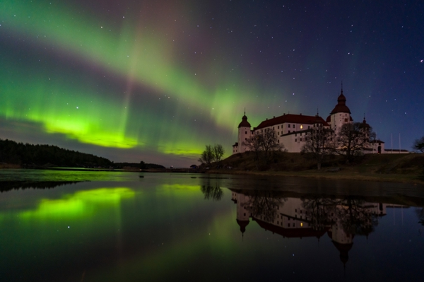 "This is a picture of Aurora in Sweden with the castle Läckö in it. It’s in the winter and with no wind so the water reflects perfectly."