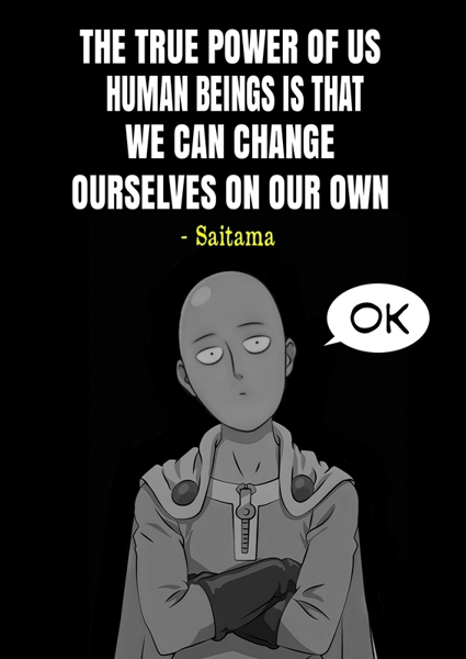 "Saitama Citater " poster af Herry Gunawan. Her er Saitama – manden, myten, ikonet, der siger det, som det er: Ægte power handler om at kunne ændre sig selv. Teksten står skarpt og ligefremt, mens Saitamas afslappede “OK” fanger den der ubekymrede, men alligevel dybe vibe. Perfekt til anime-fans, der vil have lidt filosofi med på væggen – uden alt for meget drama. Minimalistisk, cool og lige til at hive med hjem.