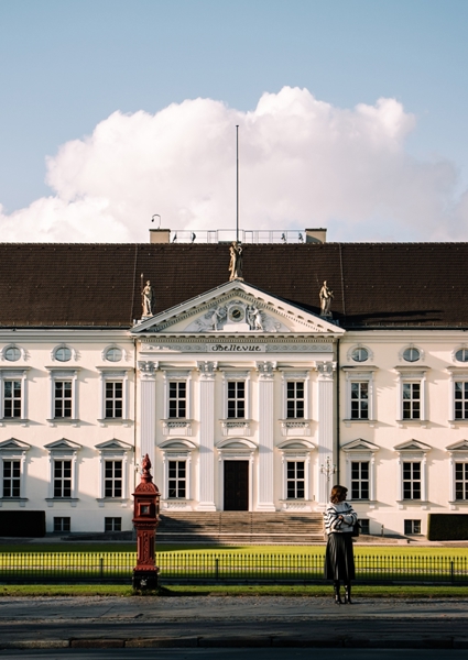 "Bellevue Slot" poster af Antonio. Bellevue Palace står der – stolt og pompøs med sin klassiske facade, som næsten fortæller historier om royale hemmeligheder og Berliners hverdagsmøder. Skyerne bagved giver et blødt twist til den ellers stramme arkitektur. En enkelt person foran bygger bro til virkeligheden – som om paladset pludselig blev lidt mere tilgængeligt, lidt mere nu. Perfekt til dig, der elsker kontraster og byens puls fanget i et øjeblik.