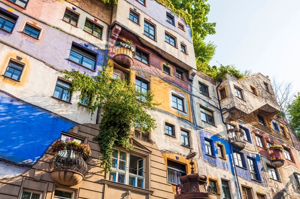 "The famous Hundertwasser House by Friedensreich Hundertwasser in Vienna, Austria"