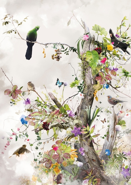 "Digital composition/hypercollage photography. All the elements were photographed by the artist himself and digitally merged. Between up and down, these drifting souls occupy land and air. Hiding in clouds. What do they think looking down upon earth? What lies above them?"