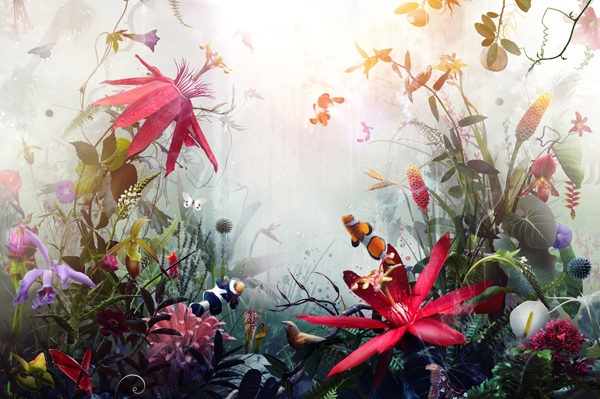 "Digital composition/hypercollage photography. All the elements were photographed by the artist himself and digitally merged. Sea anemones are named after the anemone, a flowering plant, because of their often colourful appearance."