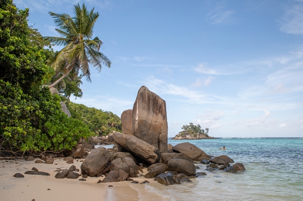 "I discovered this beautiful beach with rocks, palm trees and white sand in the southeast of Mahe."