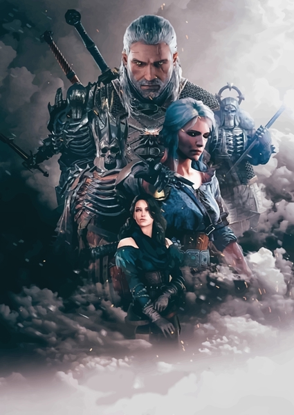 "The Witcher" poster af Reva Budiana. Et intenst øjeblik fanget i skyer af magi og mørke – The Witcher-universet folder sig ud med karakterer, der bærer både kampens ar og dybde i blikket. Sværd og rustninger blander sig med mystik, mens skyggerne bag fortæller historier om allierede og fjender. Det er som at træde direkte ind i en episk fortælling, hvor eventyr og fare går hånd i hånd – helt klart et must for fans, der tør nærstudere detaljerne.