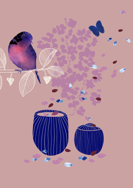 Art Print "Flora & fauna med jay" af Avis & Flos. Tilgængelig i forskellige størrelser som plakat eller indrammet fine art print. Sammenkoblet med en ramme får dette kunstværk virkelig lov til at skille sig ud i din egen personlige kunstgalleri!