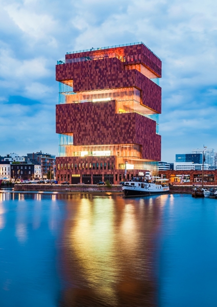 "The Museum aan de Stroom or MAS in the former harbour district Het Eilandje in Antwerp."
