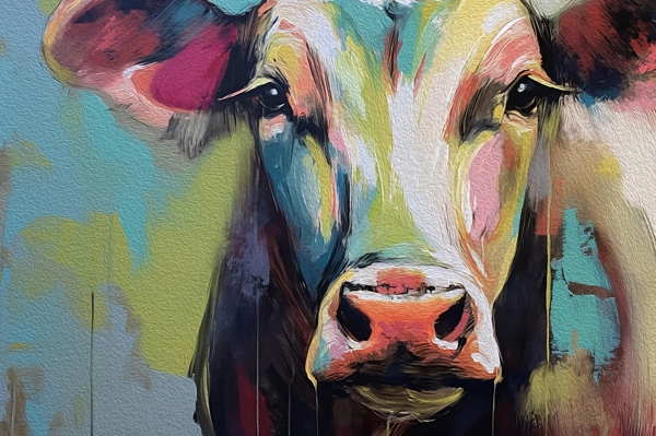 "Cows are beautiful and friendly animals. I wanted to create a painting that gives a positive feeling."